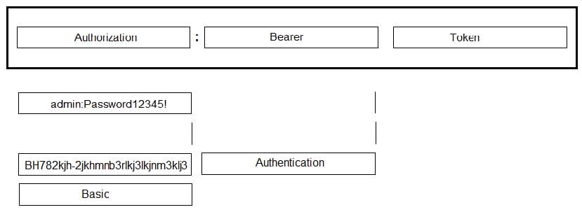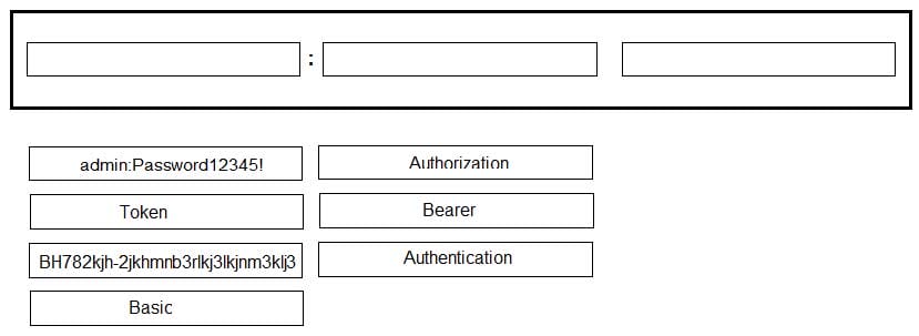 Drag and drop the components to create the authentication header used for the Webex Teams API. Not all options are used.