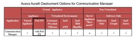 The exhibit contains the deployment options for Communication Manager. What is the Virtual Appliance that Pod FX Is transitioning to?