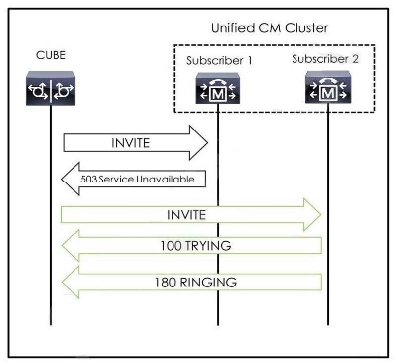 Cisco Unified Border Element is attempting to establish a call with Subscriber 1, but the call fails. Cisco Unified Border Element then retries the same call with Subscriber 2, and the call proceeds normally. Which action resolves the issue?