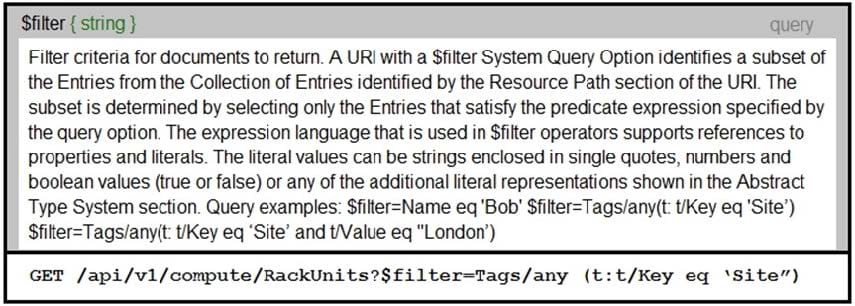 An Intersight API is being used to query RackUnit resources that have a tag keyword set to "Site". What is the expected output of this command?