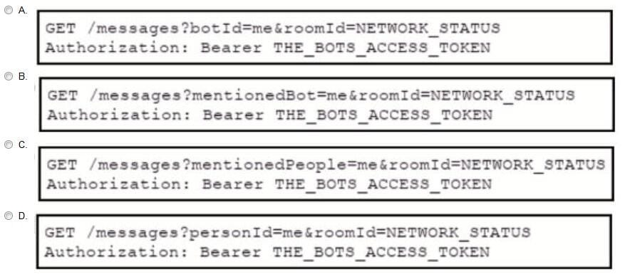 A bot has been created, called "386231131", to respond to alarm messages. A developer is now creating a Webhook to allow the bot to respond to messages. Which format allows the Webhook to respond to messages for the bot within Webex Teams?