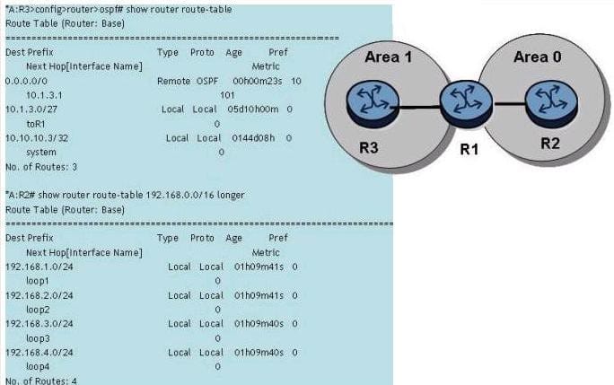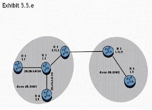 In the IS-IS network shown, router R1 has been configured to summarize network 20.20.1.0/24 and 20.20.2.0/24 as 20.20.0.0/16. Which router's routing table will be reduced compared to the routing table before the summarization?