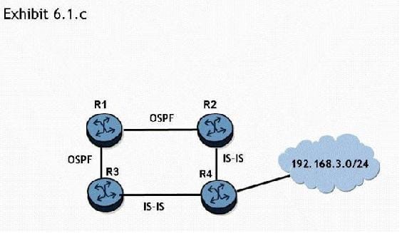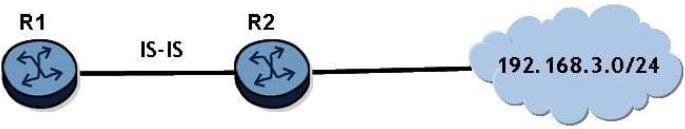 Router R2 uses IS-IS to advertise the network 192.168.3.0/24 to R1. How can router R1 discard the route?