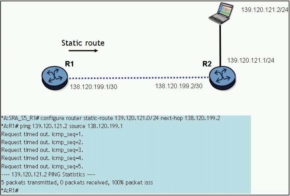 A static route has been configured on router R1 to reach the PC at 139.120.121.2. However, as shown in the exhibit, the ping fails. What is the most likely cause of the problem?