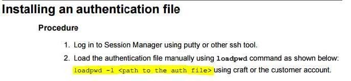 D. It transfers the authentication file to SM using SFTP and execute the loadpwd-I
