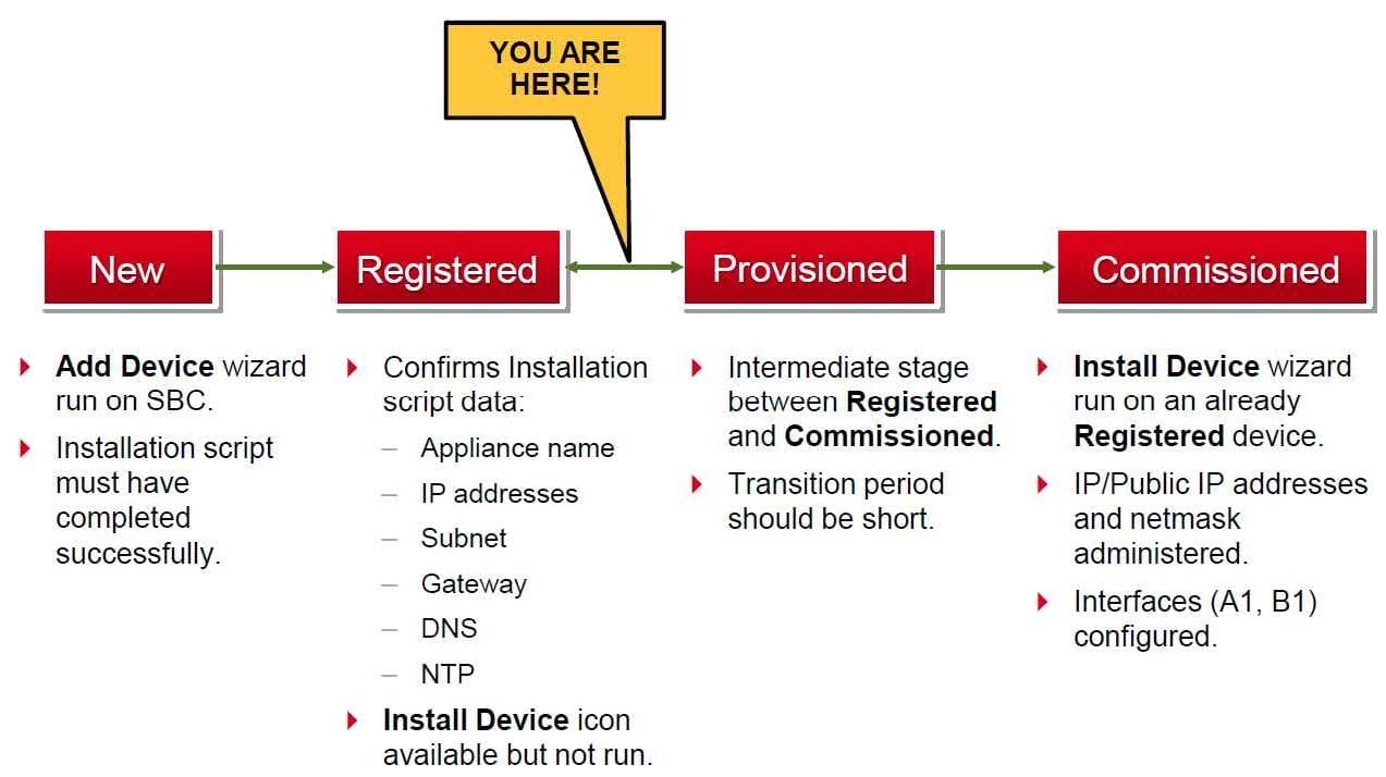 The provisioning script automatically runs as part of the first boot-up of the Avaya Session Border Controller for Enterprise (SBCE). During this process you assign the Management IP address to the SBCE. You browse to the Element Management System (EMS) to continue to install the SBCE. On the System Management > Devices web page, which status does the SBCE display before the Install link is clicked?