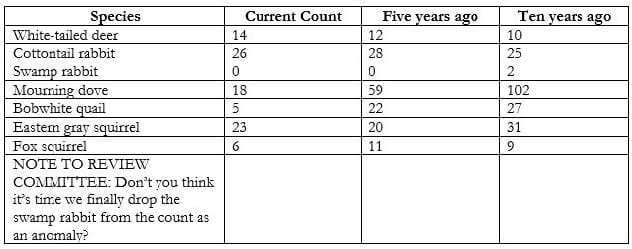 identified as common for the region (central Missouri) in which the counts were taken. (Author, 2009) As in