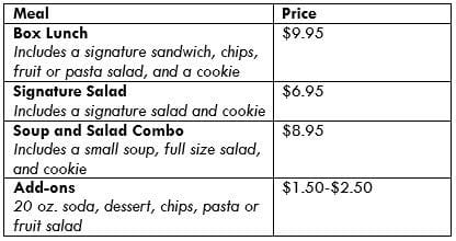 below, and contact us to schedule your next business meeting lunch.