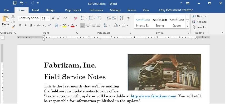 You are an administrative assistant for Fabrikam, Inc.'s Field Service division. You are preparing the monthly newsletter to be sent out to field service engineers.