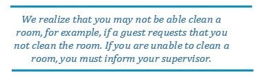 minutes left after you have completed your assigned rooms, contact your supervisor for additional