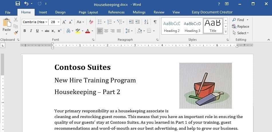 You are helping to write training program modules for Contoso Suites. You are editing the second module for housekeeping associates.