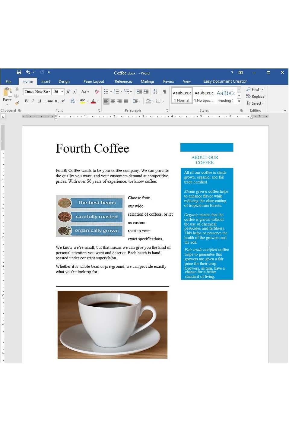 SIMULATION Project 7 of 7: Coffee Overview You are preparing a flyer for use at a commercial foods trade show. You are editing the document in