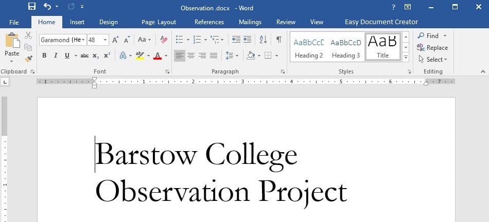 SIMULATION Project 1 of 7: Observation Overview You are a member of the Barstow College Observation Project committee. You are preparing the initial