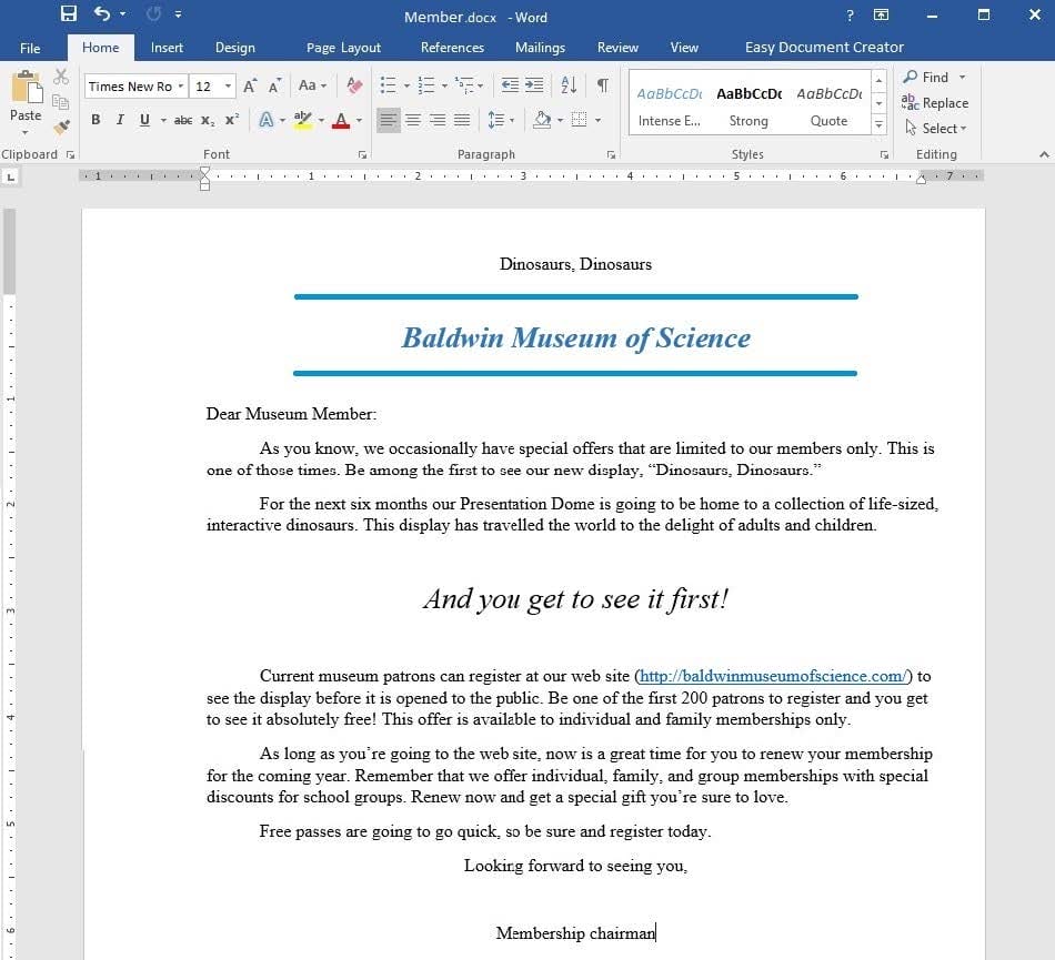 SIMULATION Project 4 of 7: Member Overview You are preparing a letter to museum members announcing a new exhibit and urging them to renew their