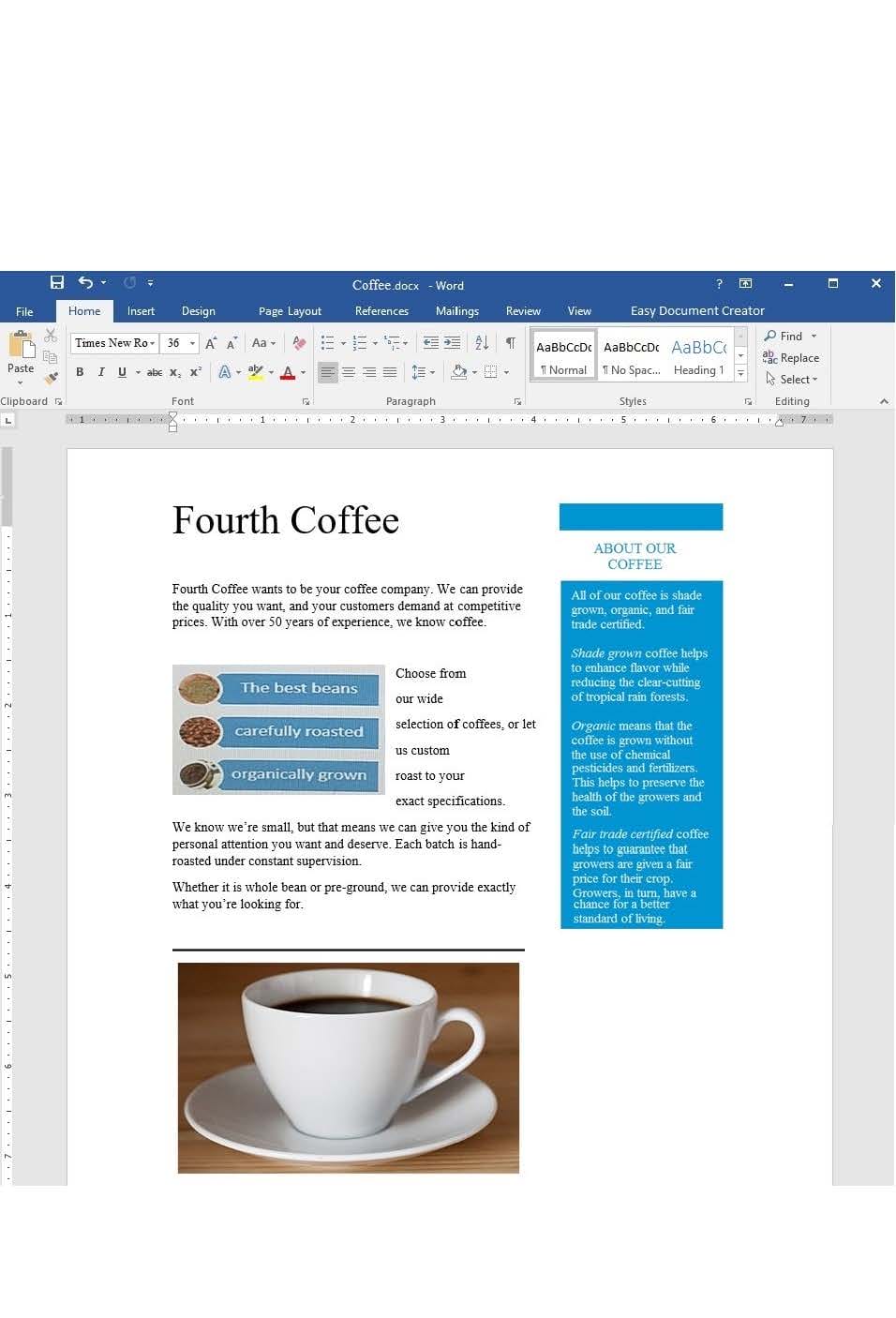SIMULATION Project 7 of 7: Coffee Overview You are preparing a flyer for use at a commercial foods trade show. You are editing the document in