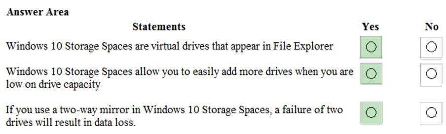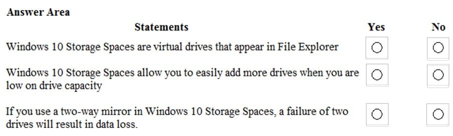 For each of the following statements, select Yes if the statement is true. Otherwise, select No. NOTE: Each correct selection is worth one point.
