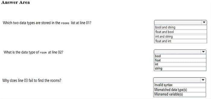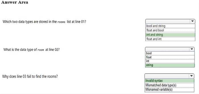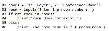 You create the following program to locate a conference room and display the room name. Line numbers are included for reference only.