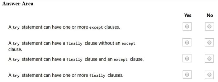 For each of the following statements, select Yes if the statement is true. Otherwise, select No.