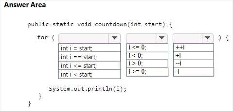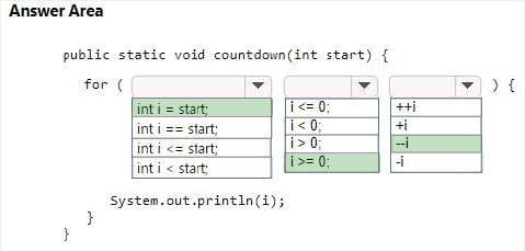 How should you complete the code? To answer, select the appropriate code segments in the answer area.