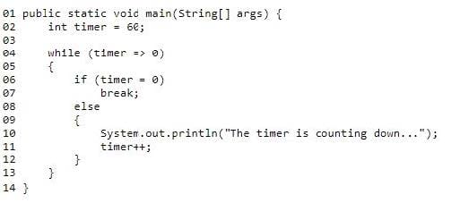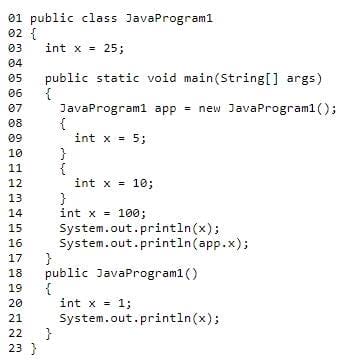 You need to evaluate the following Java program. Line numbers are included for reference only.