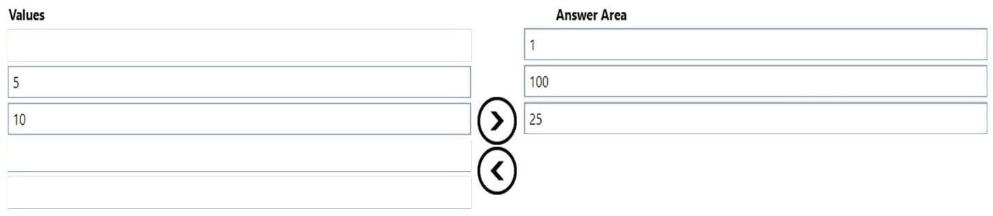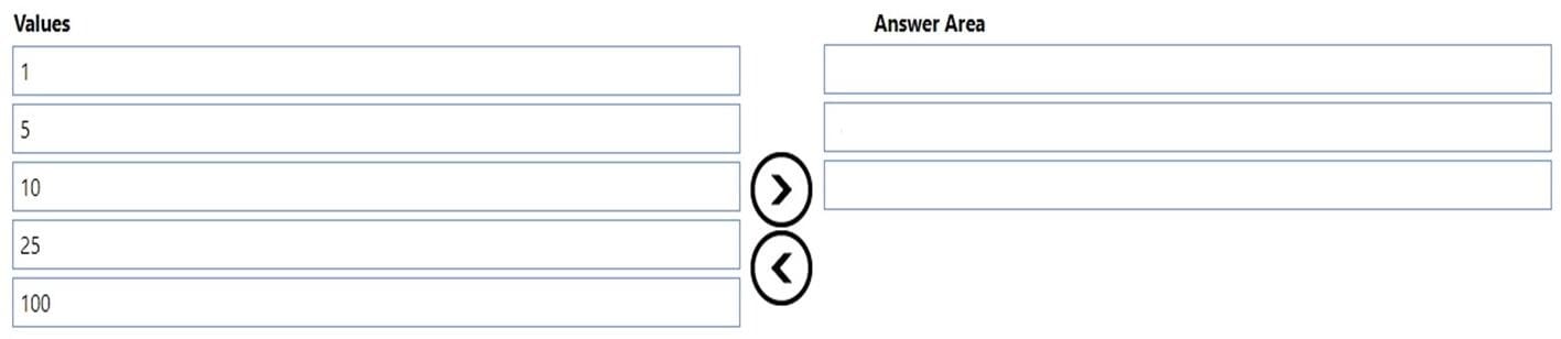 Which three values will be displayed in sequence? To answer, move the appropriate values from the list of values to the answer area and arrange them in the correct order. NOTE: Each correct selection is worth one point.