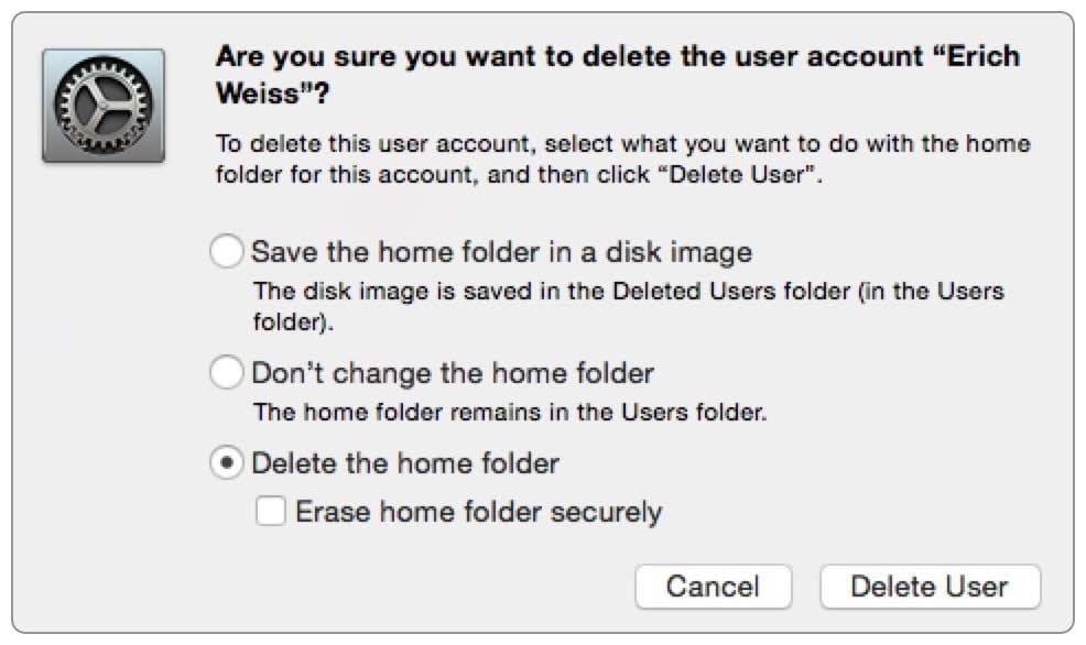 If you click Delete User in the dialog shown above, what will happen to Erich's home folder?