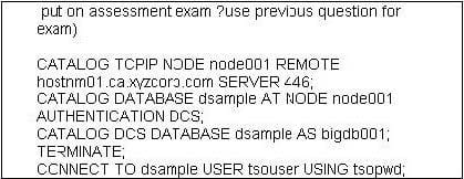 D. CATALOG DATABASE db2t AS dsample AT NODE node001 AUTHENTICATION DCS
