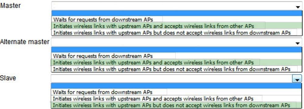 When configuring a wireless mesh, an AP is assigned one of three roles. Match the description to each role.
