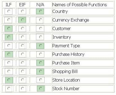 From the Names of Possible Functions listed identify the data functions for the IA. Select N/A if a Name of Possible Function does not apply.