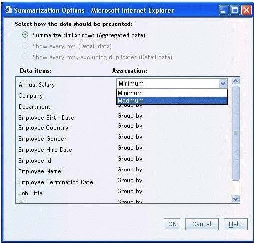 Refer to Exhibit: A SAS Web Report Studio user is changing the summarization option for Annual Salary and the only aggregations allowed are Minimum and Maximum. Why is thelist limited to only these twochoices?