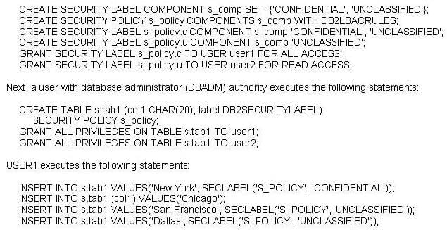 A user with Security Administrator (SECADM) authority executes the following statements: