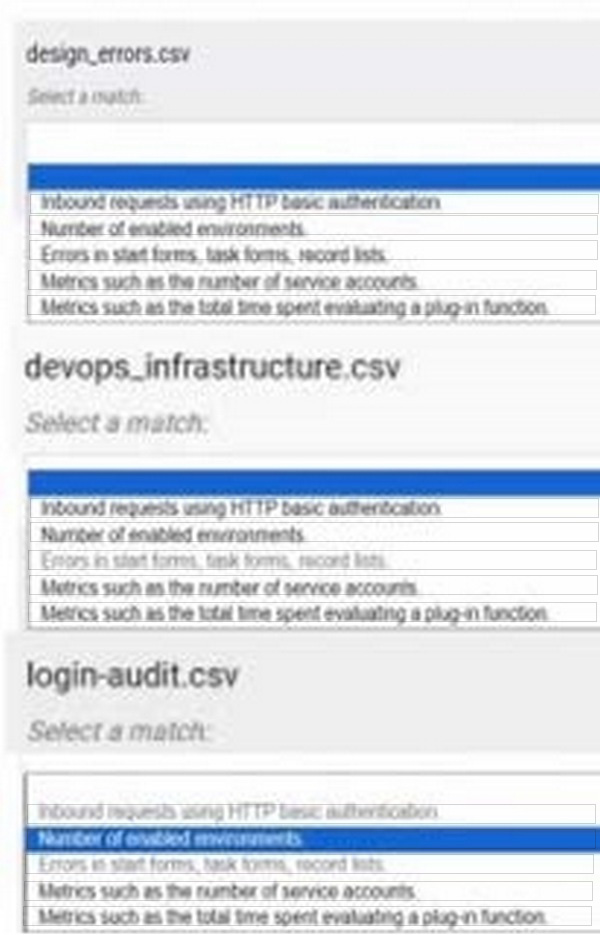 For each type of log file, match the corresponding Information that it provides. Each description will either be used once, or not at all.