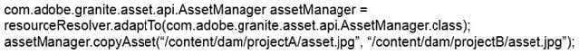 A developer writes the following code to programmatically copy an existing asset to another folder in the DAM: