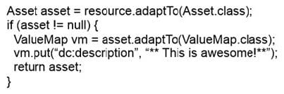 A developer wrote the following code to programmatically update the asset metadata.