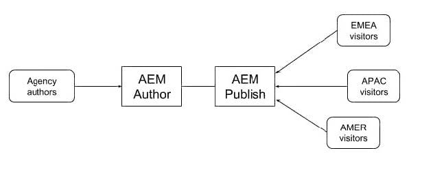 A customer with a static website uses an agency to centrally manage its content. The website is targeted for an international audience as shown in the following diagram: