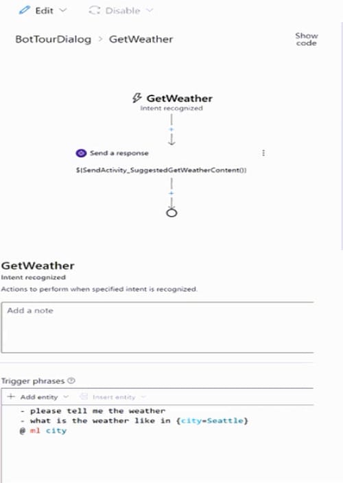 You have a bot that was built by using the Microsoft Bot Framework composer as shown in the following exhibit.