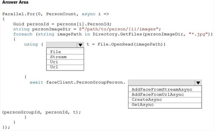 How should you complete the code? To answer, select the appropriate options in the answer area.
