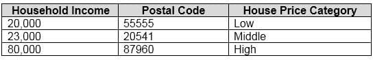 What are Household Income and House Price Category? To answer, select the appropriate option in the answer area.