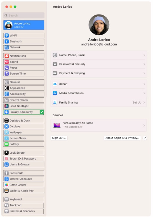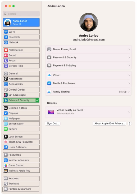 Select the setting in the sidebar that you should use to turn on Lockdown Mode.
