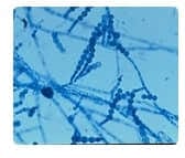 The microscopic features shown here represent Scopulariopsis species. In most instances, particularly if a patient does not have underlying immunologic or hematologic disease, Scopulariopsis species should be considered a contaminant