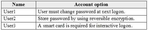 Your on-premises network contains an Active Directory domain named adatum.com that is synced to Azure Active Directory (Azure AD). Password writeback is disabled. In adatum.com, you create the users shown in the following table.