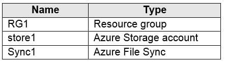 You need to synchronize the files in the file share named data to an on-premises server named Server1.