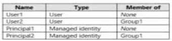 User1, Principle, and Group1 are assigned the Monitoring Reader role.
