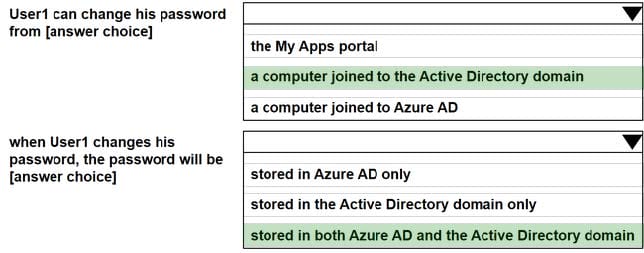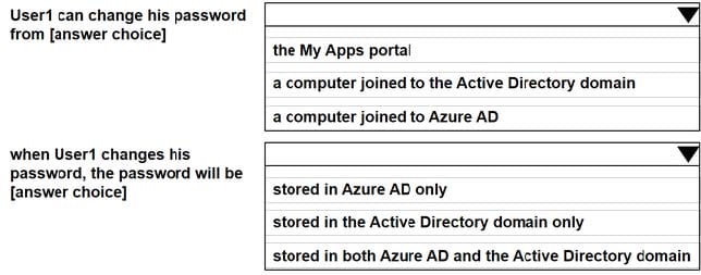 Your network contains an Active Directory domain. The domain contains a user named User1. The domain is synced to Azure Active Directory (Azure AD) as shown in the following exhibit.