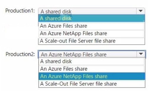 You plan to deploy two SAP NetWeaver landscapes named Production1 and Production2 to Azure. Production! will contain an SAP NetWeaver central services (ASCS/SCS) instance hosted on a Windows failover cluster. Production2 will