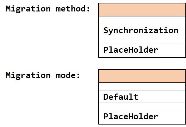 Which migration method and migration mode should you use? To answer, select the appropriate options in the answer area
