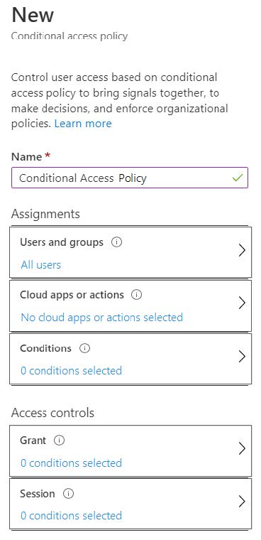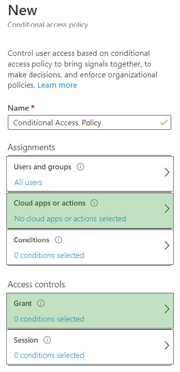 Which two settings should you modify in a conditional access policy? To answer, select the appropriate options in the answer area.