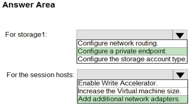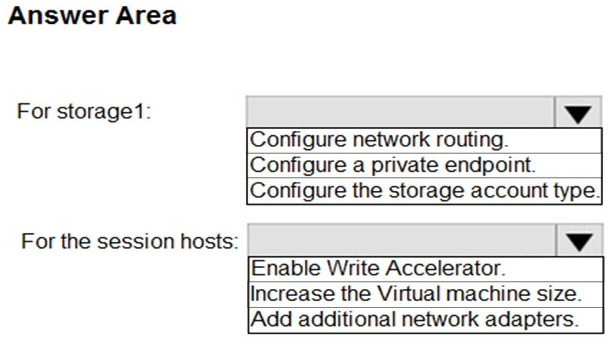 You need to configure the session hosts and storage1 to minimize network latency when loading and updating profiles.