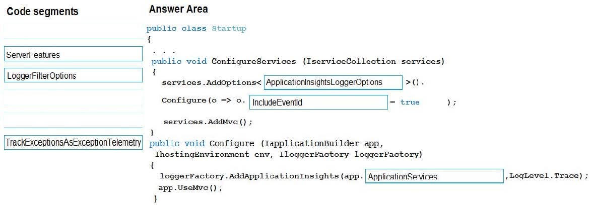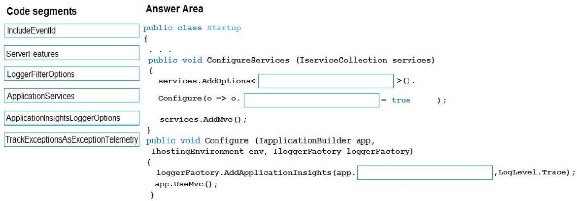 How should you complete the code? To answer, drag the appropriate code segments to the correct locations.