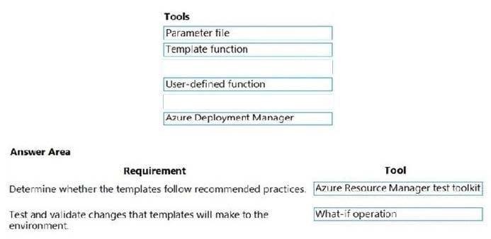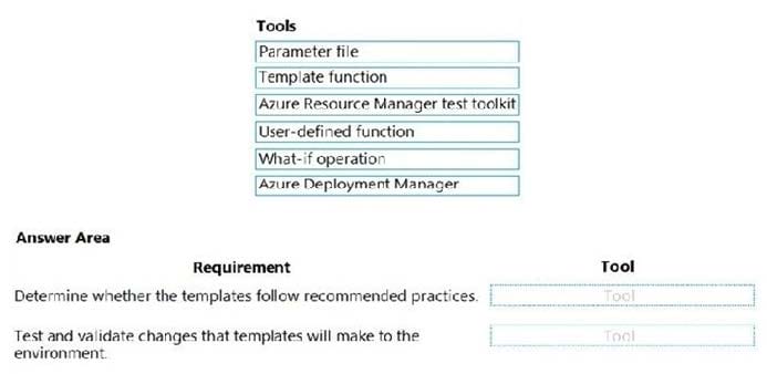 Which tools should you use? To answer, drag the appropriate tools to the correct requirements. Each tool may be used once, more than once, or not at all. You may need to drag the split bar between panes or scroll to view content.